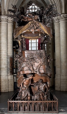 Pierre-Denis Plumier, détail de la chaire de la vérité, église Notre-Dame de la Chapelle, Bruxelles © Mallaury Vastesaeger-INRACI