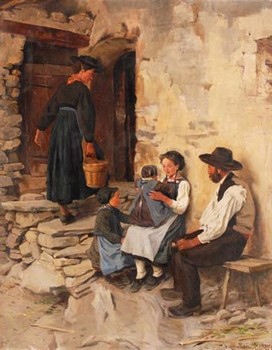 Henry van Muyden, Famille paysanne devant une maison à Savièse (1890), huile sur toile, 81 x 65,5 cm.
